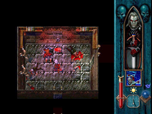 Silicon Knights has stated that with Blood Omen it intended to create a game “where there was no ultimate weapon and armor”, and indeed most of the main weapons offer both advantages and disadvantages: the mace stuns enemies so you can easily drain their blood, but doesn’t actually kill them; the fire sword is powerful but turns enemies to ash, preventing you from feeding on them; and the Soul Reaver sword – a weapon which would go on to play a huge role in the Legacy of Kain series as a whole – drains your magic meter as you use it.