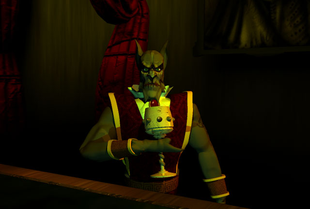 McCulloch’s script doesn’t take itself too seriously, however. There are moments of black humour, such as when Kain cuts off and carries away the head of Nupraptor, a member of the Circle of Nine. Studying the severed head in your inventory leads Kain to comment, “Alas, poor Nupraptor, I knew him well… Well, not really…”