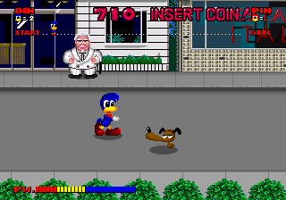 Sega’s Dynamite Düx was a two-player beat-‘em-up starring anthropomorphic ducks Pin and Bin, who were out to rescue their kidnapped owner by fighting their way through hordes of limbless dogs, roller-skating cats (a little insensitive to the dogs, don’t you think?), lightning-throwing clouds, and a crown-wearing penguin and his minions. The game still making too much sense for you? Okay, how about this: KFC’s Colonel Sanders also makes an appearance.