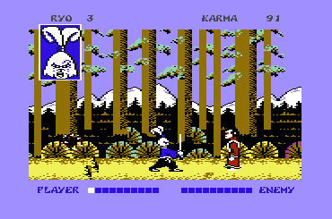 Outside of the arcades, Samurai Warrior: The Battles of Usagi Yojimbo on the Commodore 64 was an interesting curiosity similar to Karateka in that it combined side-scrolling action with one-on-one fights. Based on Stan Sakai’s comic book series Usagi Yojimbo – a series starring an anthropomorphic samurai rabbit which takes place centuries ago, during Japan’s Edo period – the game featured a level of choice and depth unseen in most similar games of the time, with the inclusion of alternate paths, sword training, the ability to earn money through gambling, and a karma system based on the player’s choice of actions.