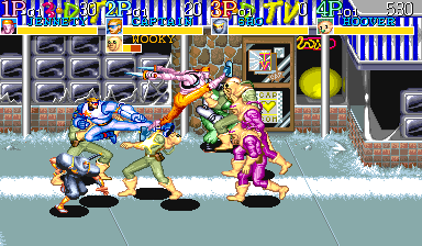 Some games such as Tatsumi’s Big Fight and Almanic Corporation’s Mazin Saga: Mutant Fighter tried to offer the best of both worlds by including both beat-‘em-up action and one-on-one fighting, but the results never lived up to the higher-quality games of either genre, and so for the most part, the two genres remained separate.