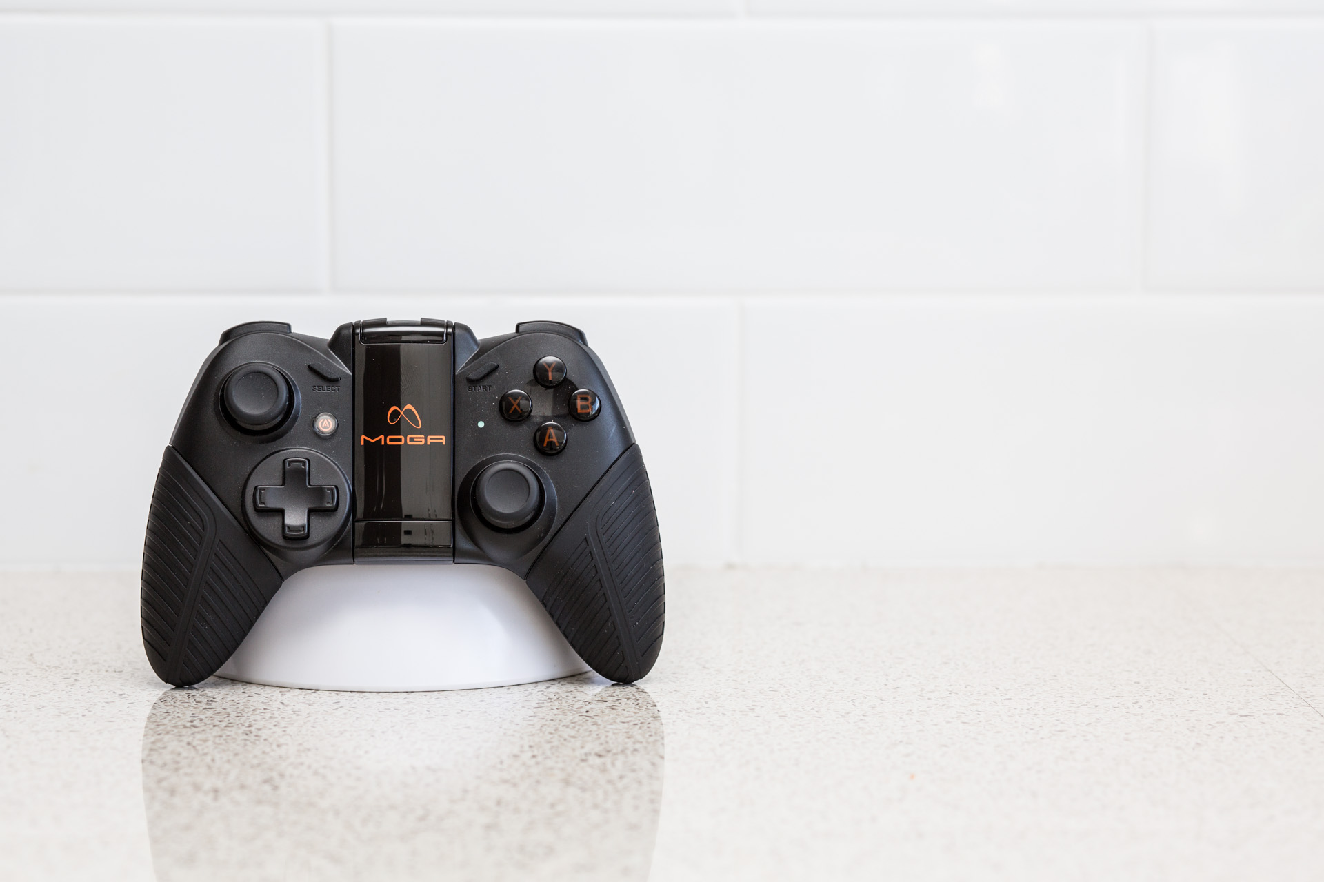 Also included in the box is the MOGA Pro Controller. A Bluetooth, twin stick game controller for use with Android based devices.